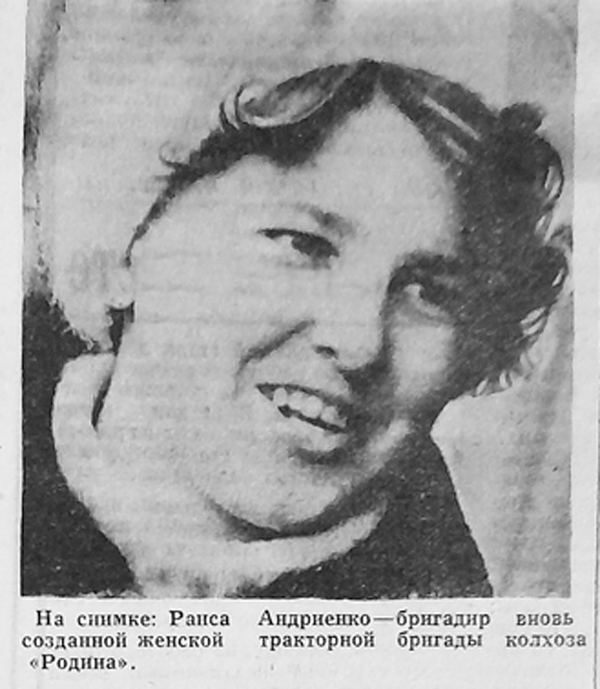 В марте 1974 года «Авангард» посвятил страницу женщинам, работавшим механизаторами. По всей стране тогда развернулось движение «Женщины-на трактор!», создавались женские тракторные звенья и в хозяйствах Обливского района. На газетной полосе были напечатаны портреты бригадира тракторной бригады колхоза «Родина» Раисы Андриенко и трактористки из колхоза «Путь к коммунизму» Татьяны Овчаренко.