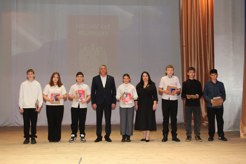 В торжественной обстановке в этот день также состоялось вручение паспортов семи юным жителям станицы Обливской. Вручили ребятам первый паспорт и поздравили их с этим событием глава администрации Обливского района Алексей Деревянко и председатель местного отделения «Движение Первых» в Обливском районе Ольга Богданова.
